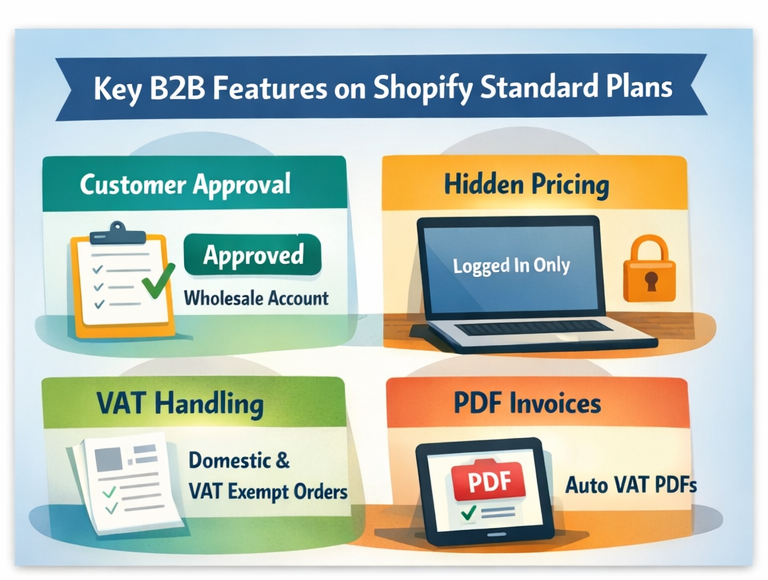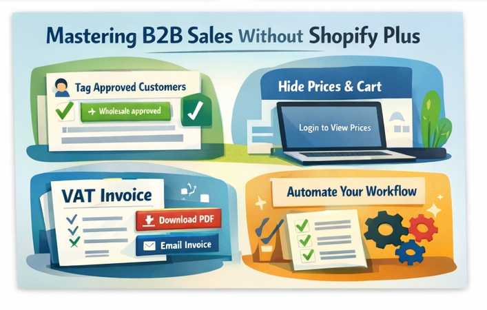 This article explains how to create a B2B wholesale store on non-Plus Shopify, the best practical approaches, common limitations, and how to manage important features like customer approval, VAT handling, wholesale pricing, and PDF VAT invoices.